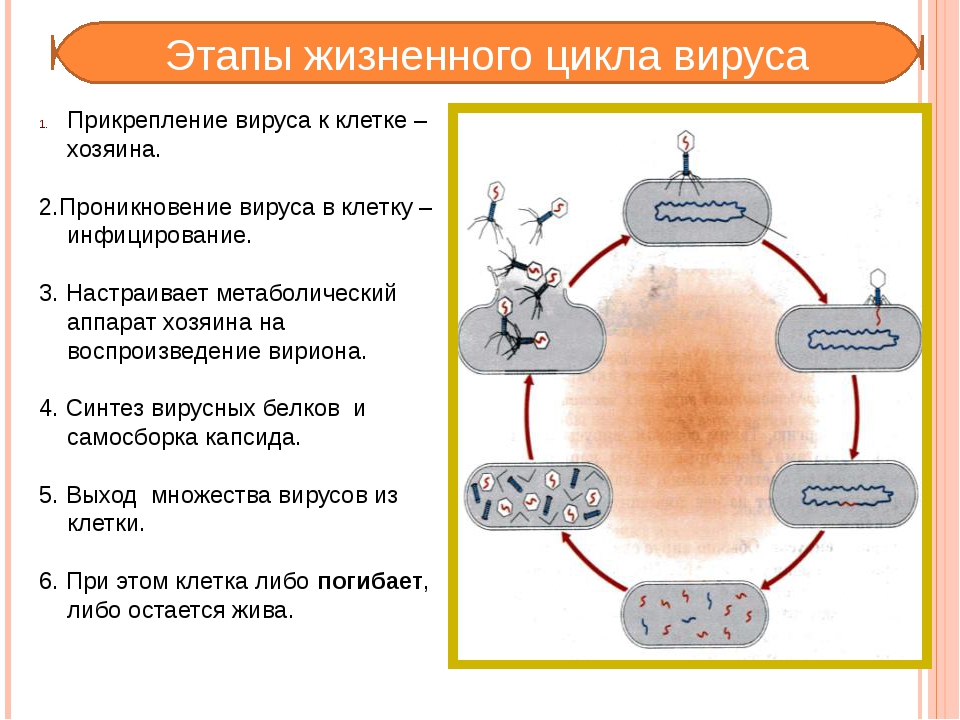 Жизненный цикл вирусов: изучая характеристики вирусов, важно также узнать об их жизненном цикле. Важно понимать, что вирус может воспроизводиться только при попадании в организм хозяина