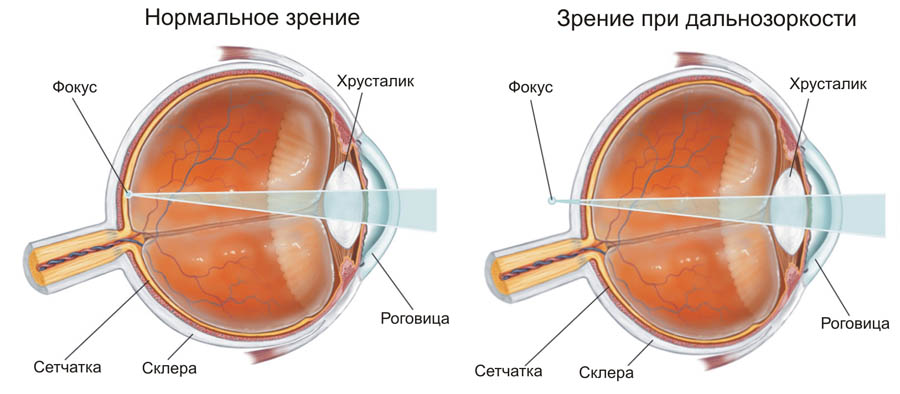 При нормальном и здоровом зрении лучи света идут параллельно от удаленных объектов и собираются точно на сетчатке глаза.