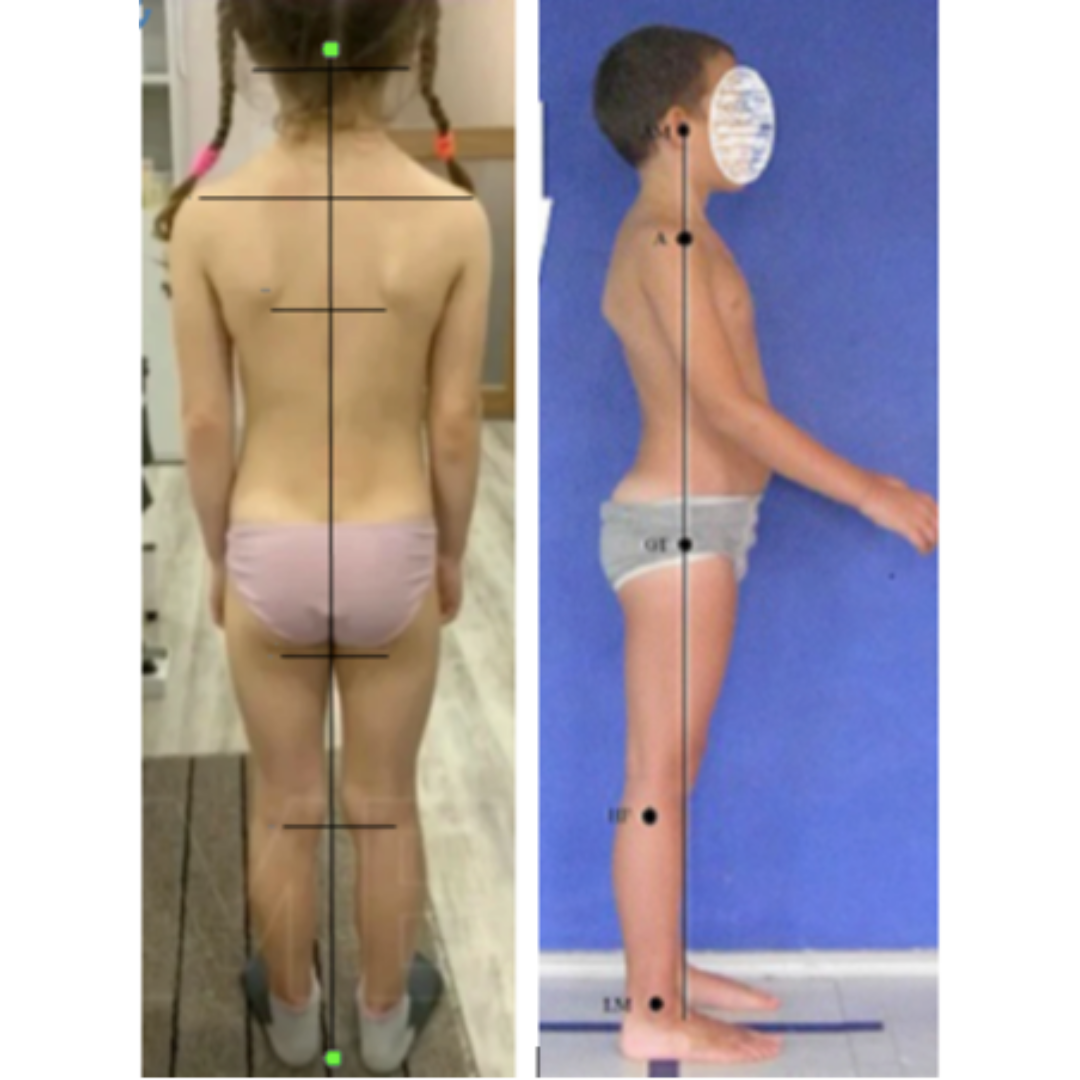 Хотим вам порекомендовать сфотографировать осанку вашего ребёнка как минимум со спины и сбоку, после чего посмотрите на фотографию внимательно еще раз, а лучше попробуйте отметить все анатомические точки, соедините их линиями и оцените симметричность их расположения. Данный метод оценки называется методом сравнительной фотографии.