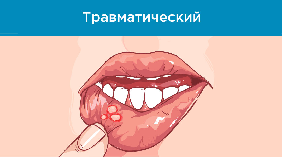 Повреждения слизистой ротовой полости часто возникают в результате частого приема слишком горячей или очень твердой пищи, при пользовании зубными протезами, в результате прикусывания щеки или губы. Это — фактор риска возникновения афтозного стоматита.