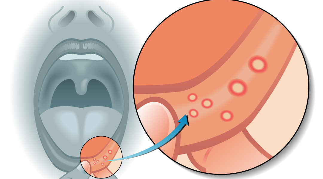 - Грандулярный стоматит. При заболевании поражаются слюнные железы.