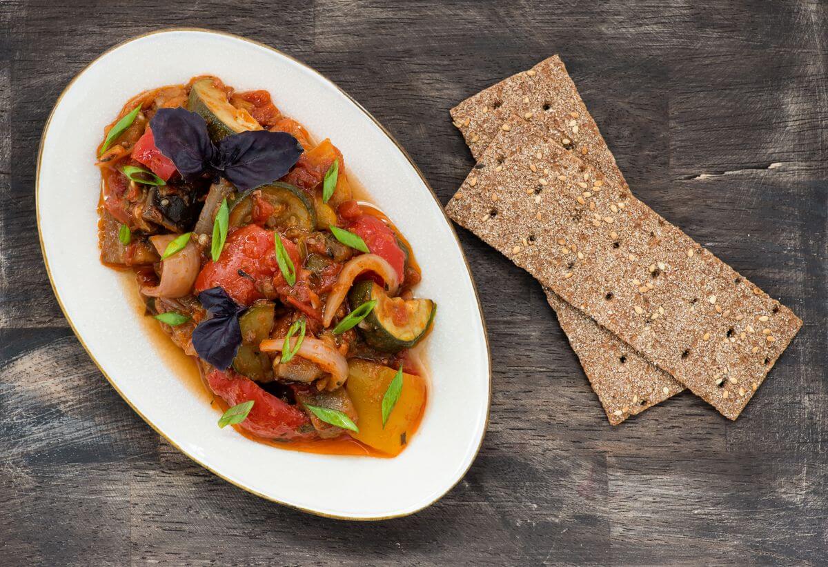 - Тушеные овощи или зеленый салат в качестве гарнира, обеспечивающий разнообразие питательных веществ