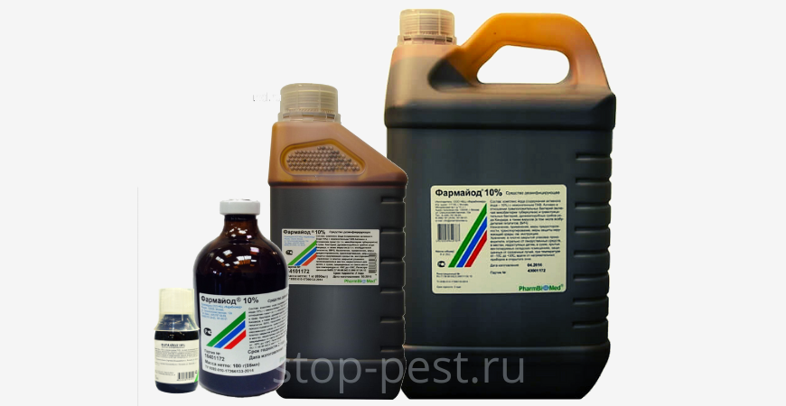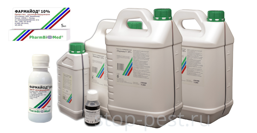 1) «Фармайод, 10%» — жидкий раствор. Основное его назначение – это дезинфекция, включающая обработку производственных помещений и технологического оборудования, инвентаря, тары, теплосетей и трубопроводов. Используется для дезинфекционной обработки теплиц в отсутствии культурных растений. Формат фасовки – ампула 5 мл., флакон 50 гр./ 40 мл., 100 гр./ 80 мл. , канистры 1 кг./800 мл. и 5 кг.