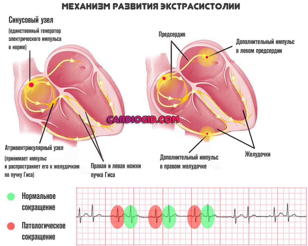 Аритмии разных типов. Кроме тех, что связаны с нарушением функционирования проводящей системы