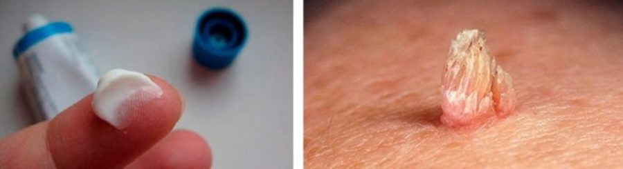 Обработать место вокруг нароста жирным кремом во избежание попадания лекарства на здоровые ткани.