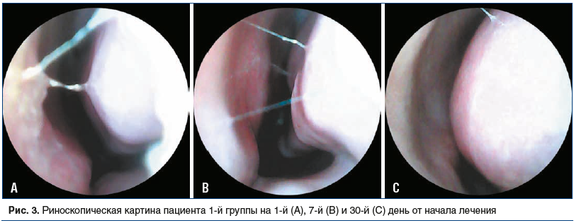 В обеих группах проводился рутинный ЛОР-осмотр: в день включения в исследование (День 0), на 7-й (День 7) и на 30-й (День 30) день от начала лечения.