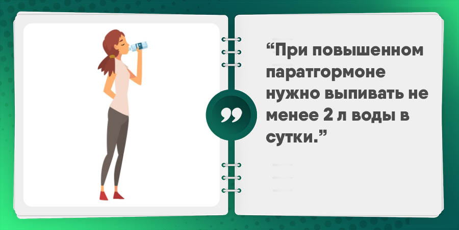 Другой совет – много пить. Это поможет лучше выводить фосфор с мочой и ПЩЖ могут перестать чересчур активно работать. Кроме того, обильное питье служит фактором защиты от формирования камней в почках.