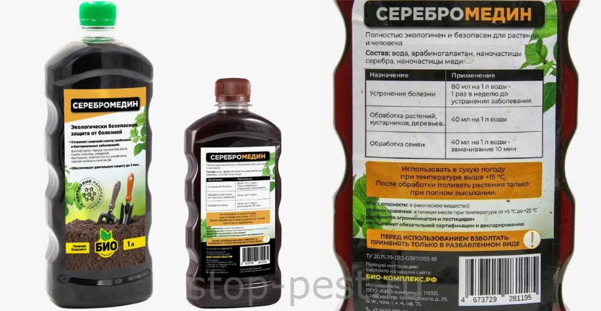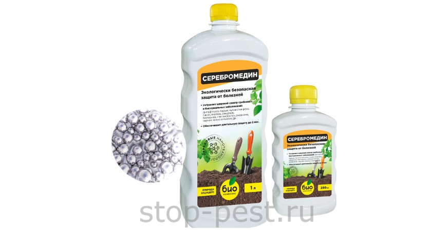 Применение биопрепаратов, таких как Серебромедин, полученных с использованием инновационных нанотехнологий, позволяет не только получить экологически чистую продукцию, но и избежать накопления химических элементов в растительных тканях и почве. Помимо функции эффективной защиты растения от болезней, обеспечивается возможность питания растения необходимыми микроэлементами, ускорения развития, улучшения урожайных характеристик и пр.