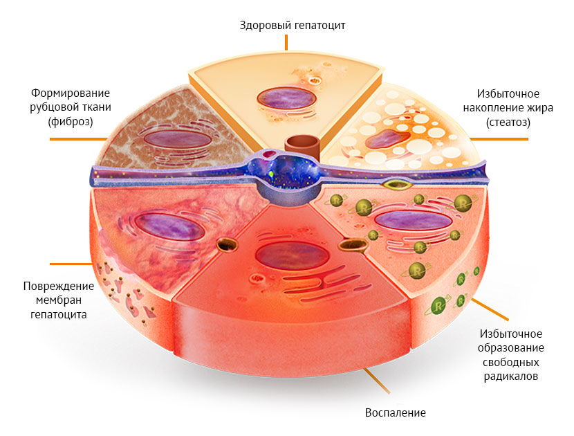 Медикамент в момент использования создает защитную оболочку и не допускает проникновения вредных токсинов в структуру печени. Благодаря этим процессам активизируется появление фосфолипидов и белков, в результате чего происходит эффект очищения печени, а также восстановление поврежденных мембран.