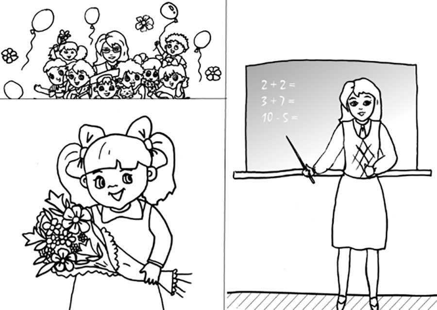Готовые и заранее переданные через родителей раскраски к 1 сентября помогут и украсить класс. Раскрашенные детьми заготовки под вырезание из бумаги позже станут композицией на окнах класса или плакатом для школьной выставки. В этом случае нужно выбрать изображения без фона с сочетающимися между собой сюжетами и заранее написать родителям, чем именно раскрашивать шаблоны, чтобы потом они между собой сочетались.