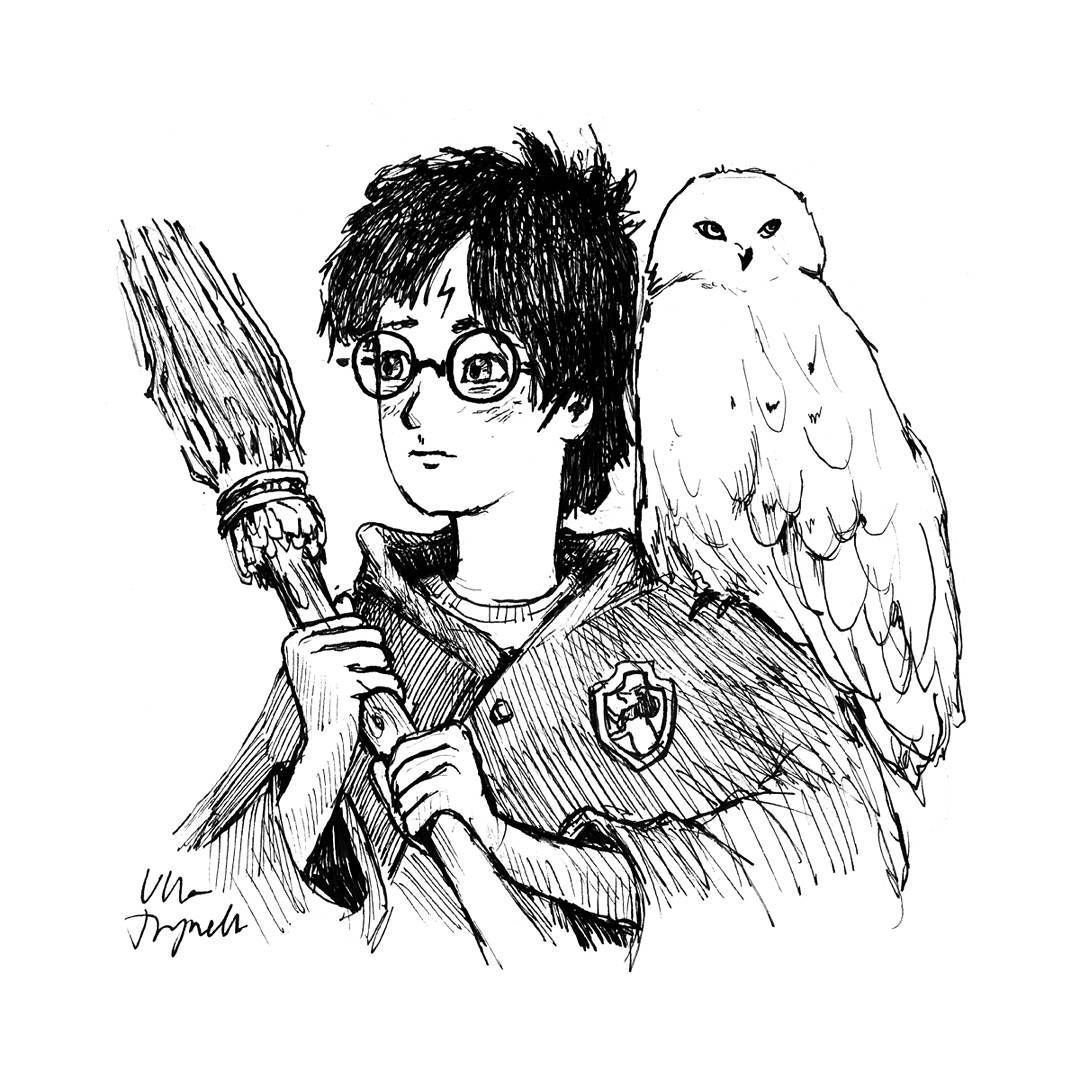 Как нарисовать Гарри Поттера с совой и философским камнем