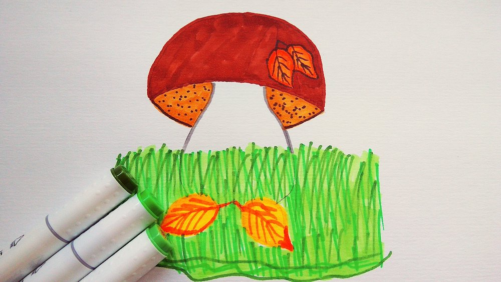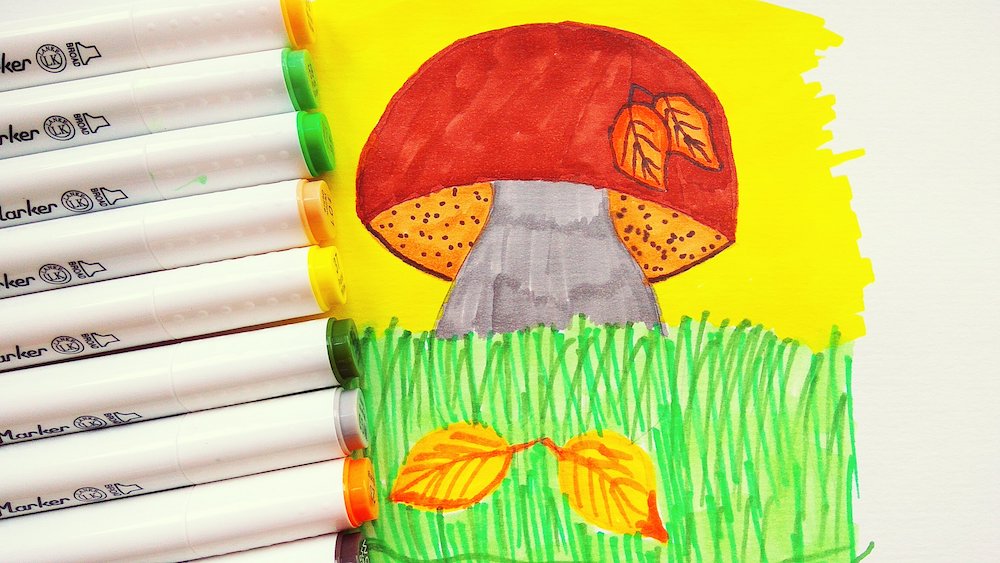 Как нарисовать гриб фломастерами