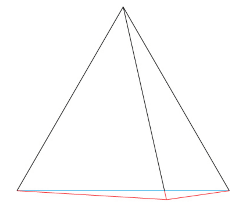 Рисуем диагональную линию через вершину треугольника. Степень наклона этой линии отвечает за разворот пирамиды.