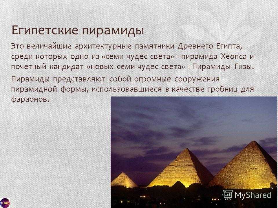 Презентация на тему: » ЕГИПЕТСКИЕ ПИРАМИДЫ » — Транскрипт: