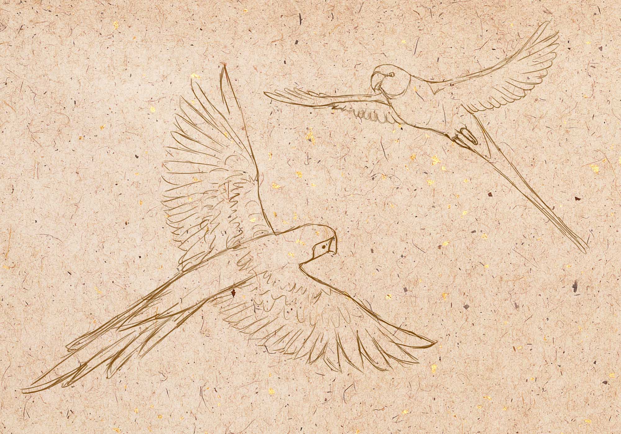 Начинаем делать контуры попугая. Наведите конечное изображение карандашом