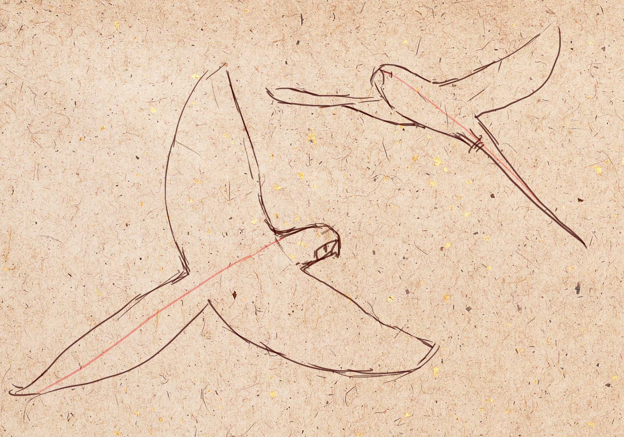 - с левой стороны рисуем второе крыло. Оно должно быть по размеру чуть меньше первого;
