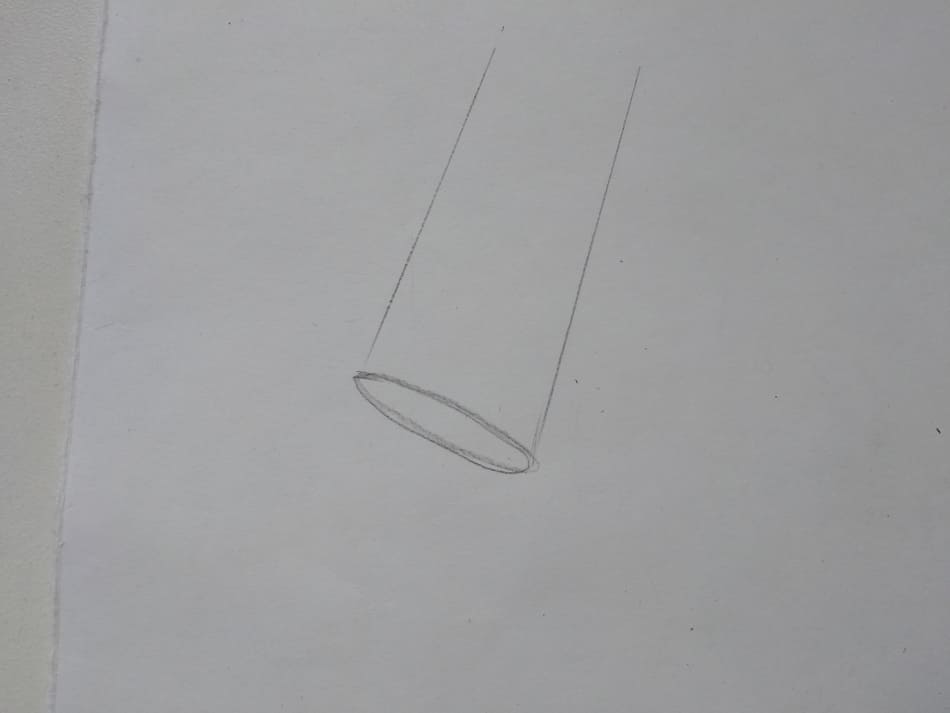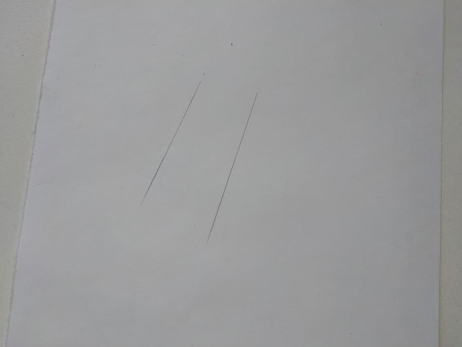 Шаг 1. Возьмите линейку и карандаш. Рисуем две линии. Они идут немного под углом друг к другу, расширяясь вниз.