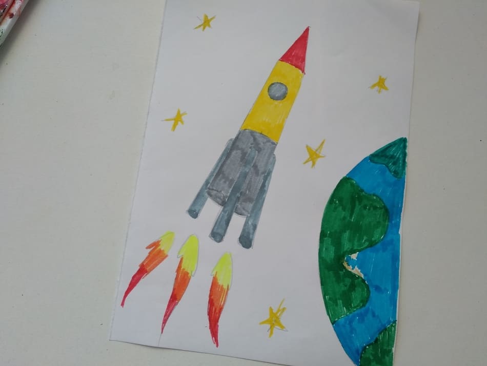 Легкие рисунки на 12 апреля для детей начальной школы (1-4 классов)