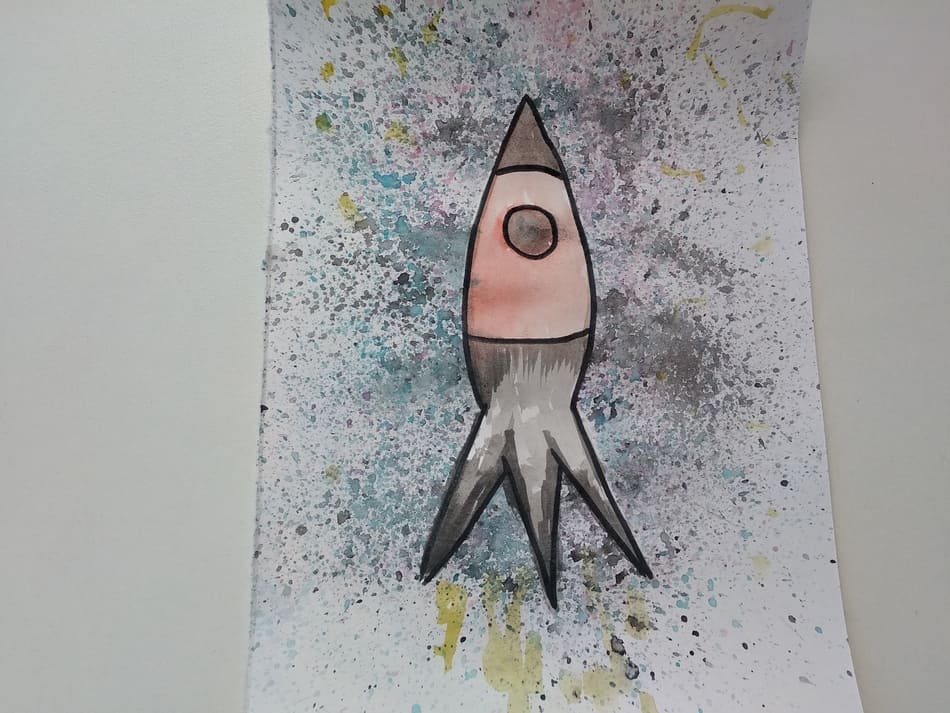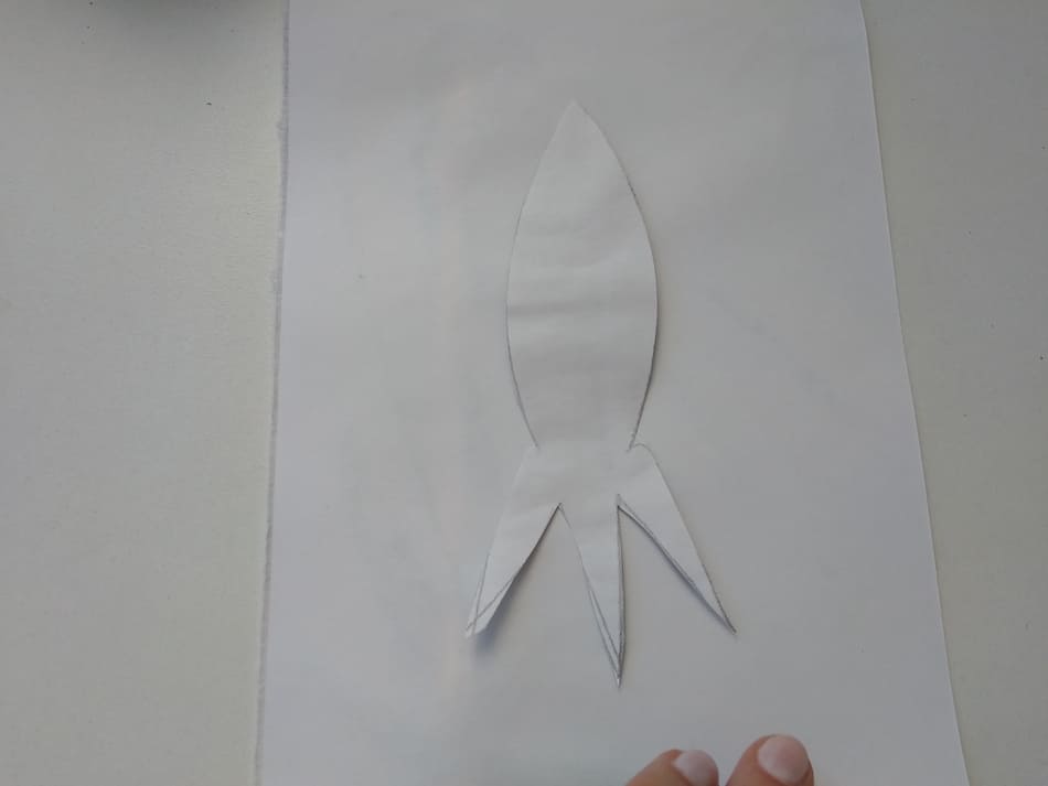 Дизайн создан по трафарету. В интернете можно найти, можно нарисовать от руки, как у меня. Самый простой способ — изобразить силуэт ракеты. Пусть будет больше фантазии, даже интереснее.
