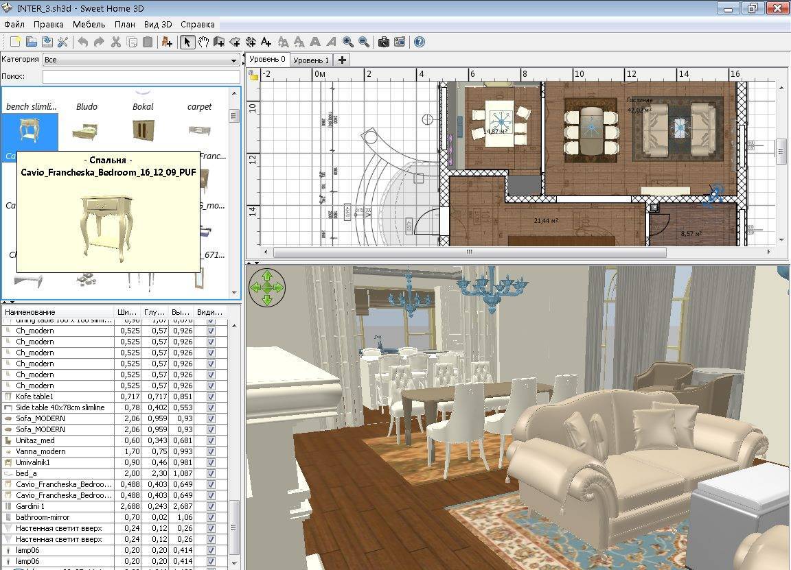 Программа Sweet Home 3D предназначена в основном для тех, кому нужно быстро сделать дизайн интерьера, не имея навыков работы в подобных приложениях