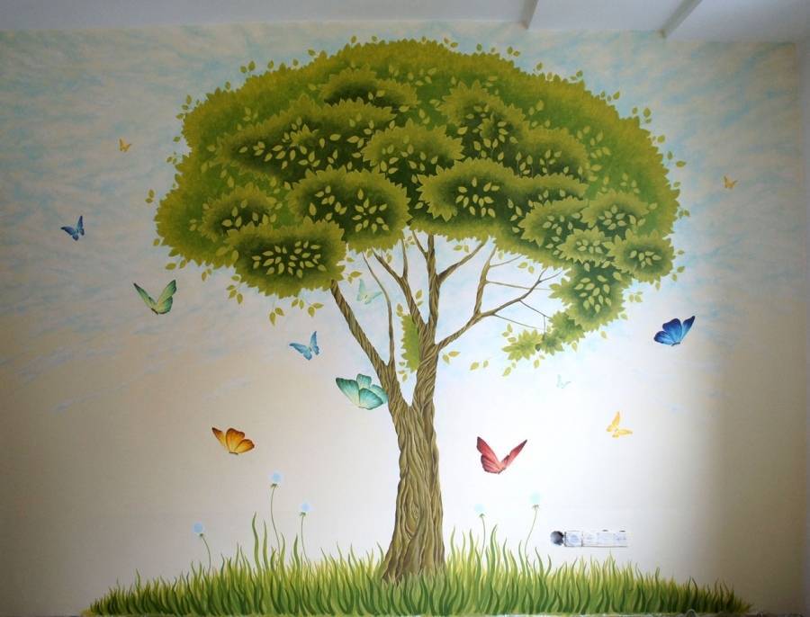 Но здесь важно не переусердствовать, ведь ребенок будет находиться в этом помещении продолжительное время. В цветовой гамме настенных рисунков в спальне малыша должны доминировать мягкие пастельные тона, чтобы чрезмерно не возбуждать неокрепшую психику. Если настенное изображение планируется в игровой комнате, то здесь нет никаких препятствий к использованию ярких цветов